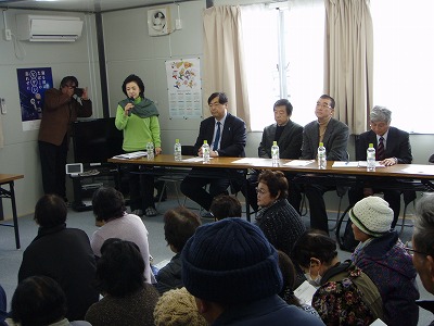 12月17日に、櫻井よしこさん(国家基本問題研究所理事長)とともに、午前は福島県二本松市(安達運動公園仮説住宅)、午後は福島市(矢野目仮設住宅)の二箇所を訪れました。いつ、自分たちの町に戻れるかわからない浪江町からの避難者の皆さま方と、率直に意見を交わし、議論が大いに盛り上がりました。今回の訪問に至った経緯の発端は、去る11月10日に横浜で開催した「第8回松田まなぶと語る会」でした。そこには櫻井よしこさんをゲストにお迎えしましたが、福島県からは、NPO法人ハッピーロードネットの皆さまが、その会にいらしていました。司会の福岡孝純・帝京大学/法政大学教授のご紹介でした。その際、櫻井よしこさんをご紹介しましたところ、原発問題に対する考え方を共有していることがわかり、ぜひ、福島県の原発避難民の皆さまを元気づけてほしいということになりました。