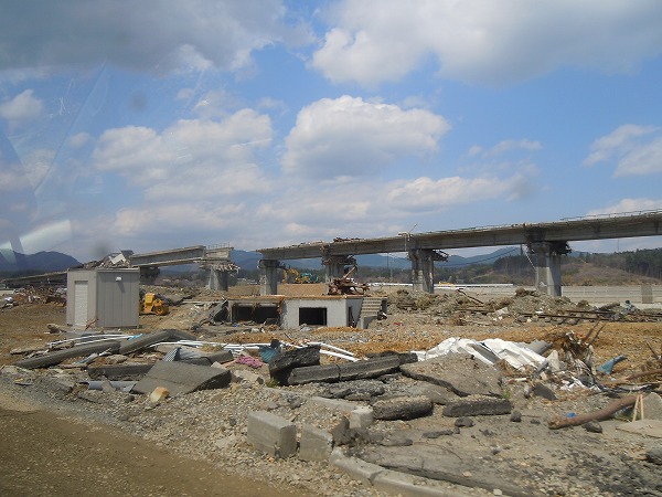 翌日4月24日、松田まなぶと調所さんは、中村さんの案内で、石巻市、南三陸町、気仙沼市、陸前高田市、大船渡市と、被災状況を見てきました。まさに「壊滅」という言葉はこのためにある。そう思わせるほどの津波の破壊力が残した悲惨な状況は、想像を絶するものでした。