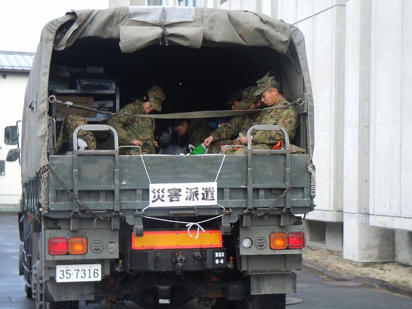 自衛隊の皆さん...車の中で束の間の休息