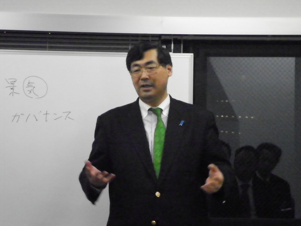 講演では、まず、松田まなぶより、政局情勢について簡単な報告を行ったあと、前半は、「行政改革」が果たして日本の本当の答なのかについて議論してみました。